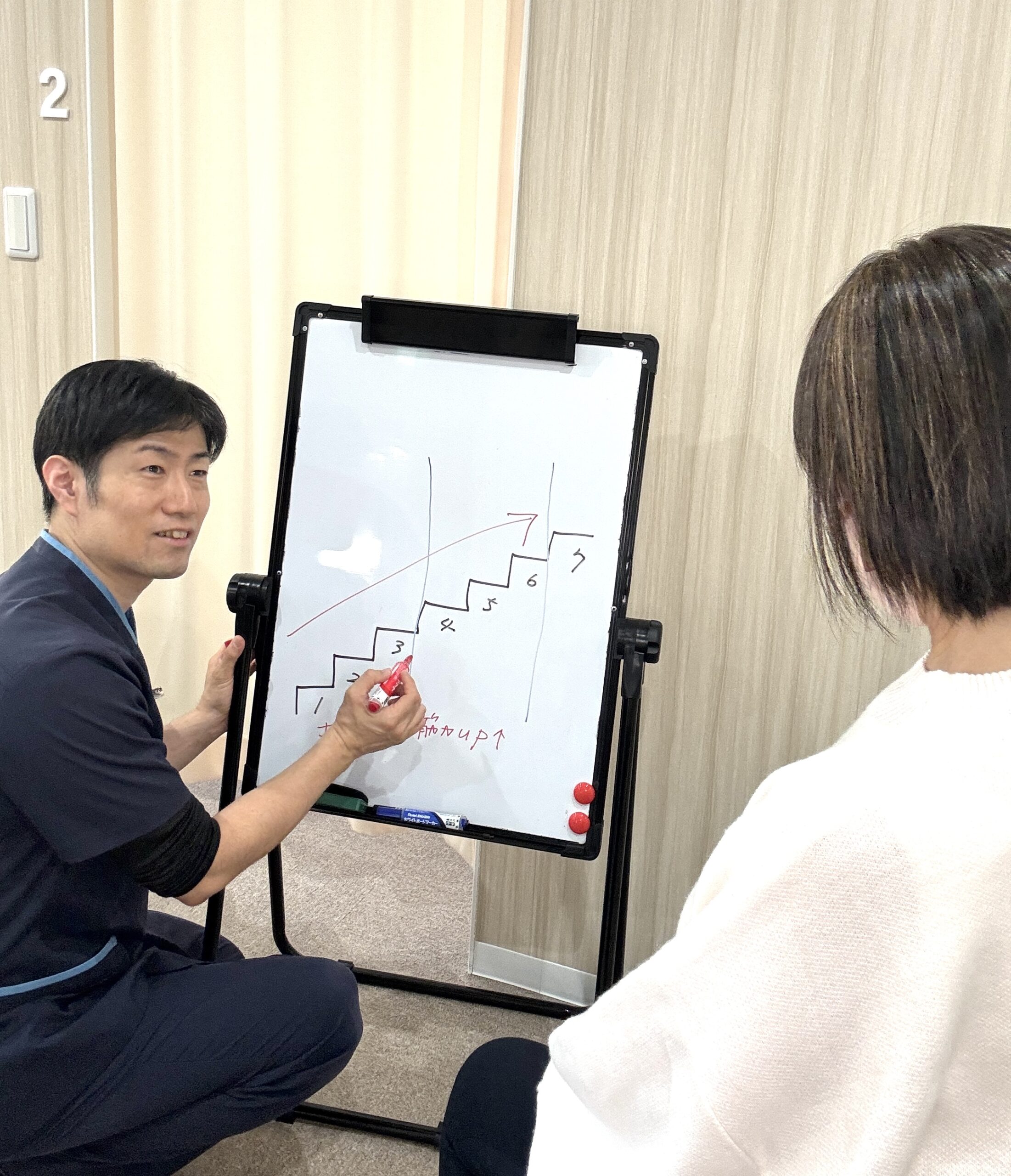 何が原因で痛みや不調になっているのか、おおよその施術期間や通院頻度などもお伝えします。